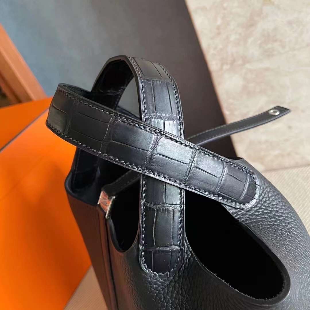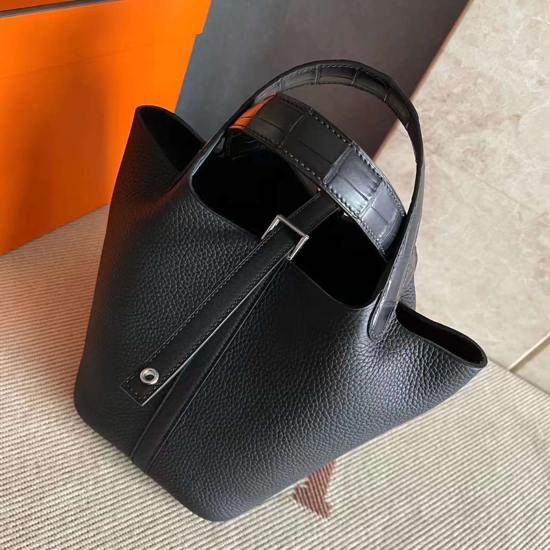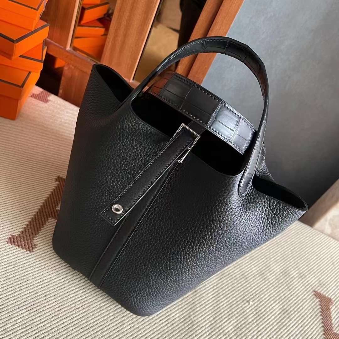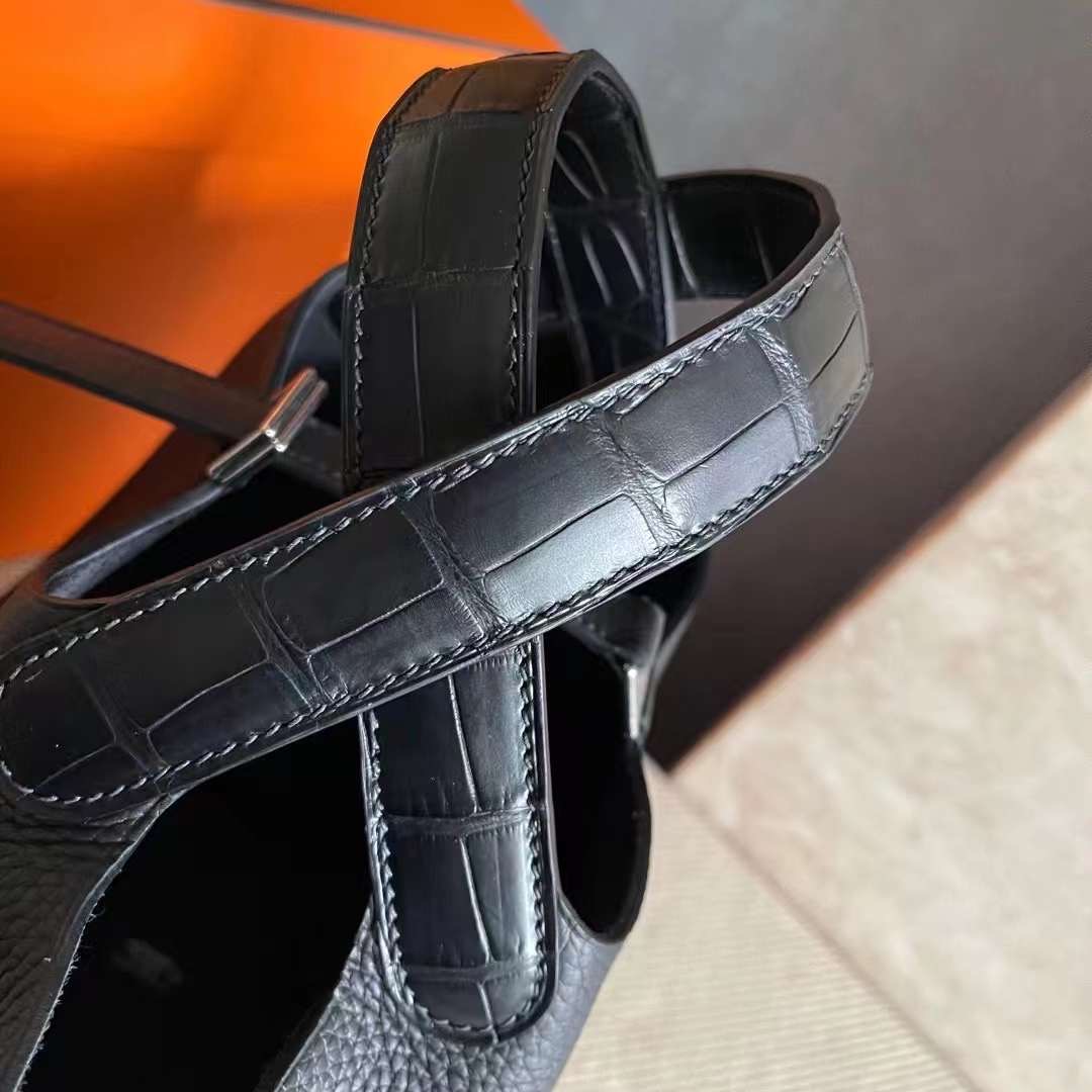 エルメス ピコタンロックPM/18 クロ トリヨンクレマンス/クロコダイル アリゲーターマット ゴールド金具 【H品】 HERMES Picotin lock PM/18 Noir(89) Taurillon Clemence/Matt alligator crocodile skin Gold Buckle【NEW】