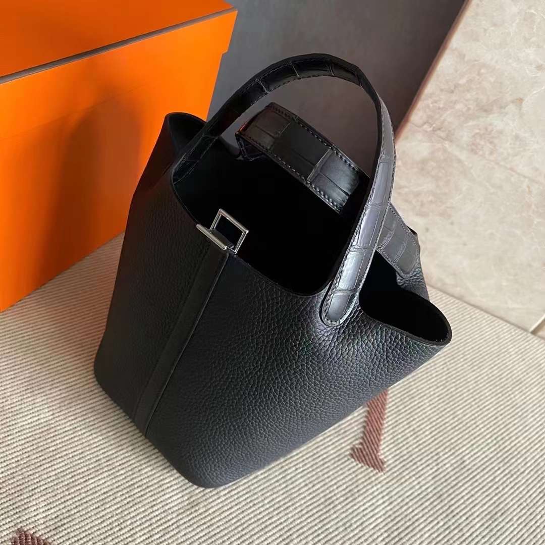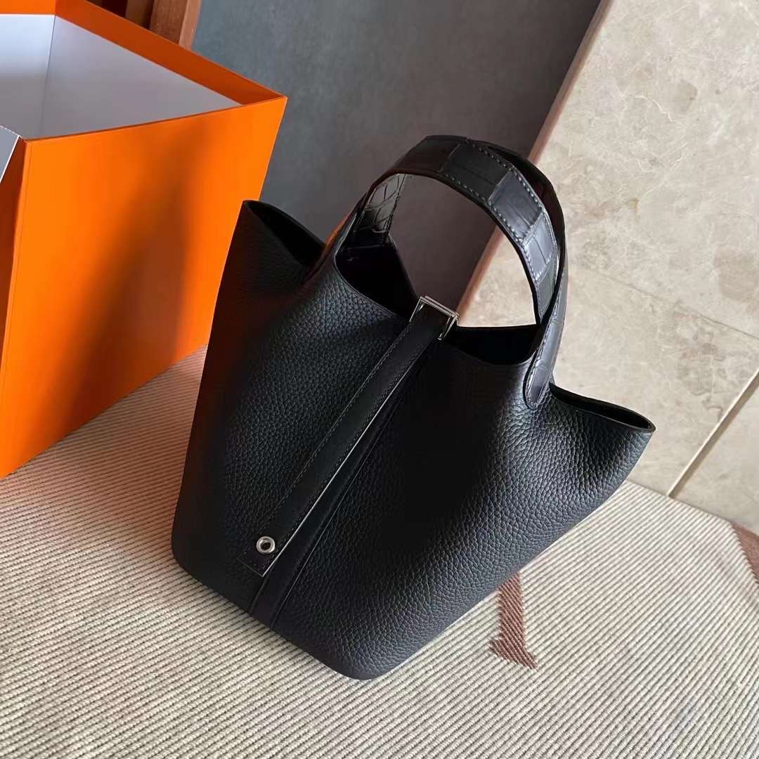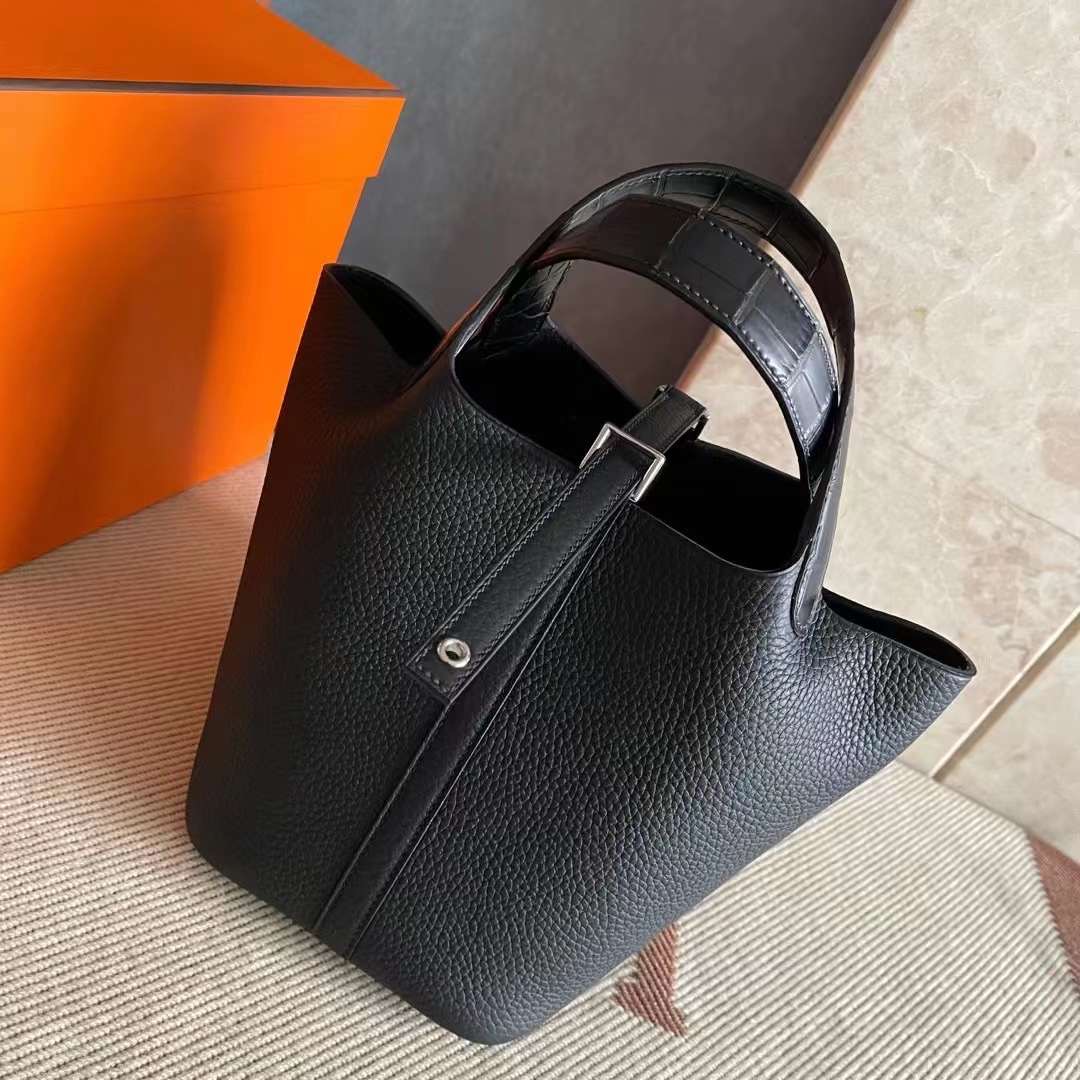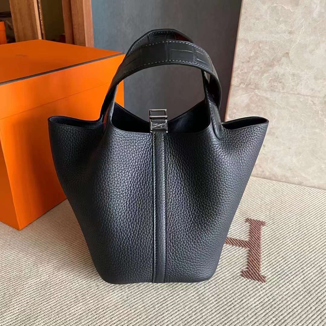 エルメス ピコタンロックPM/18 クロ トリヨンクレマンス/クロコダイル アリゲーターマット ゴールド金具 【H品】 HERMES Picotin lock PM/18 Noir(89) Taurillon Clemence/Matt alligator crocodile skin Gold Buckle【NEW】